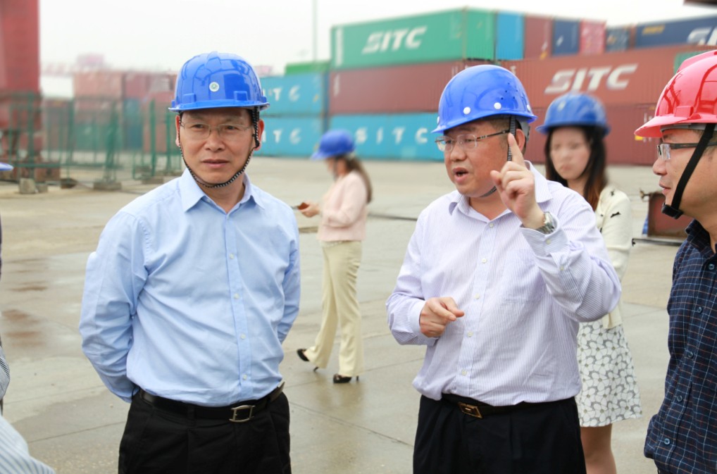 5月16日,省長助理袁建堯一行在湖南省水運(yùn)管理局黨委書記、局長錢俊君,總工程師許足懷,辦公室主任張小剛,長沙市地方海事局黨委委員、工會(huì)主席胡曉東等陪同下來長沙新港調(diào)研。湖南長沙新港有限責(zé)任公司董事長、總經(jīng)理唐忠良,董事、長沙集星集裝箱碼頭有限公司副總經(jīng)理辛華,總經(jīng)理助理周勇接待。 袁建堯一行首先來到集裝箱碼頭,辛華向領(lǐng)導(dǎo)介紹,目前,長沙新港共有8個(gè)千噸級(jí)泊位,三期工程建成后,將新建6個(gè)2000噸級(jí)碼頭泊位,兼顧3000噸級(jí)船舶靠泊。屆時(shí),長沙新港年吞吐能力將達(dá)到1000萬噸。