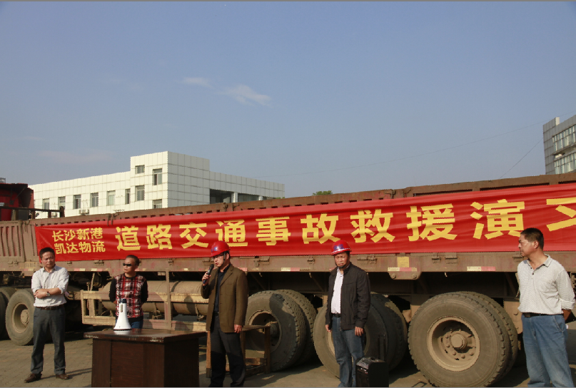 為檢驗我公司《道路交通安全事故應(yīng)急救援預(yù)案》的科學(xué)性和可操作性,總結(jié)經(jīng)驗,進(jìn)一步健全和完善應(yīng)急預(yù)案,確保道路交通安全事故應(yīng)急預(yù)案管理工作制度完善,達(dá)到增強道路安全意識,提高交通事故應(yīng)對能力的目的。由長沙新港凱達(dá)物流有限公司,長沙新港有限責(zé)任公司公司安保部和辦公室、長沙運德物流公司、長沙聯(lián)云客運公司聯(lián)合舉辦的道路交通安全事故應(yīng)急救援演練于2015115日在新港公司件雜貨碼頭三號堆場停車坪進(jìn)行。