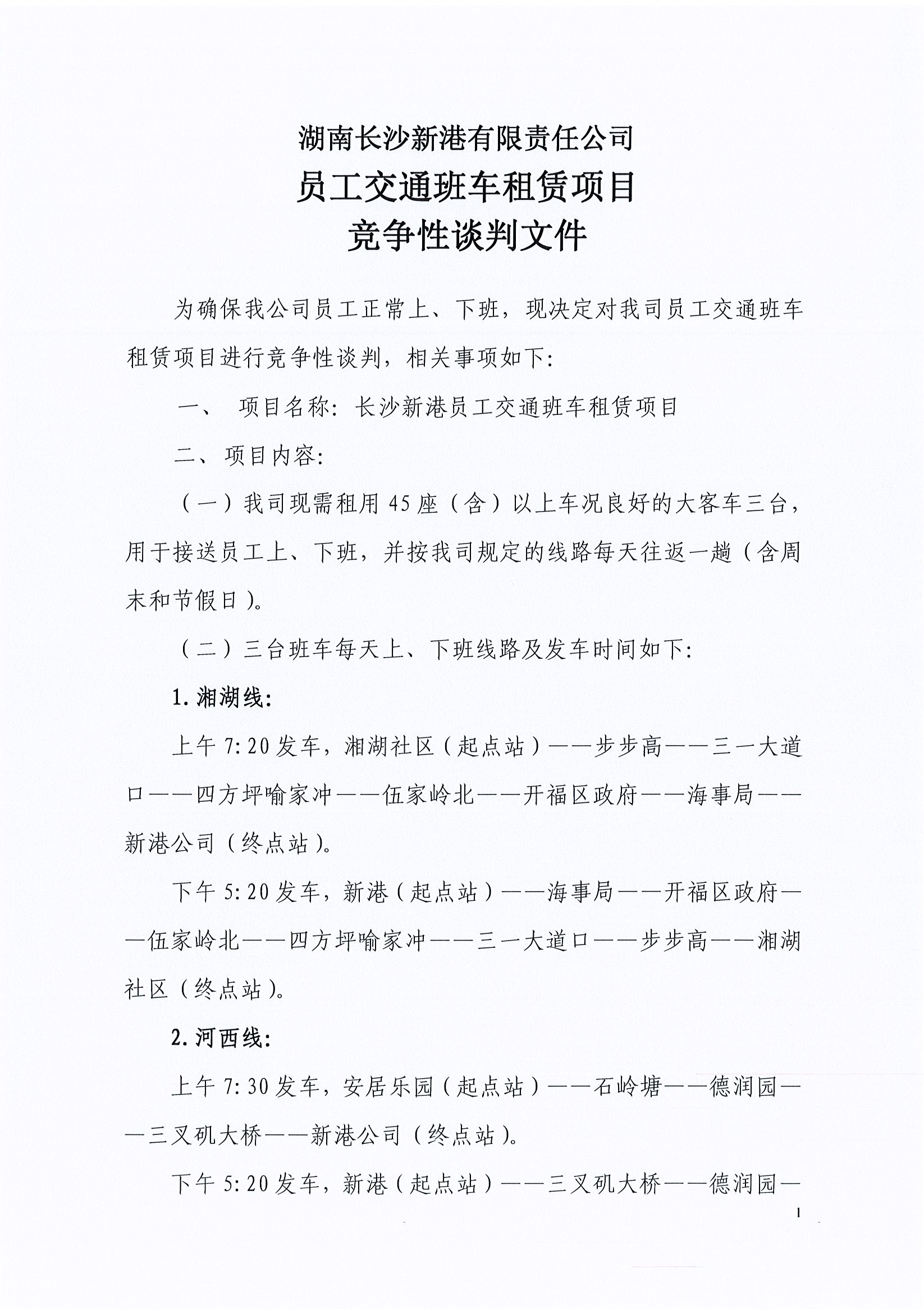 湖南長(zhǎng)沙新港有限責(zé)任公司 員工交通班車租賃項(xiàng)目競(jìng)爭(zhēng)性談判邀請(qǐng)公告
