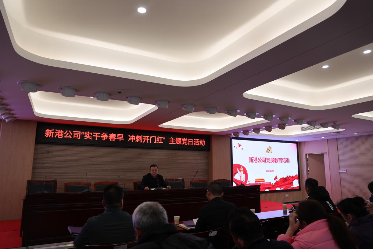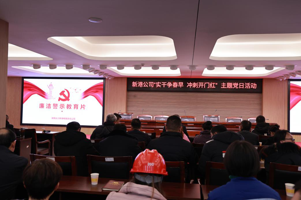 實干爭春早 沖刺開門紅 中共湖南長沙新港有限責任公司委員會主題黨日活動 為扎實擔當起學習宣傳貫徹黨的二十大精神排頭兵的光榮使命,教育引導廣大黨員干部從黨的二十大專題學習汲取精神力量,在新的一年里,進一步堅定理想信念,主動肩負時代重任,開啟新征程。2月17日上午,長沙交通集團新港公司開展學習貫徹黨的二十大精神“實干爭春早,沖刺開門紅”主題黨日活動,此次活動,以“微影片、微黨課、微實事、黨員教育培訓”等多種形式推動黨的二十大精神落地見效。公司黨委副書記、董事、總經(jīng)理辛華作宣講,班子成員、公司中層管理人員、各支部黨員共76人參加活動。 深學悟初心-【微影片】 全體黨員干部集中觀看2022年度湖南反腐警示片《忠誠與背叛》。通過觀看警示教育片,引導黨員上好廉潔教育“新年第一課”,教育全司廣大黨員干部面對誘惑要保持清醒的頭腦,自覺抵制各種腐敗現(xiàn)象的侵蝕,牢固樹立正確的人生觀、利益觀和權力觀,干干凈凈做事,老老實實做人。  篤行求實效-【微黨課】 學理論之思,踐初心之行。新港公司以“實干爭春早,沖刺開門紅”為主題,從七個黨支部里的推選黨員干部帶頭講,鼓勵黨員人人上臺講【微黨課】,突出“微”這個形式,聚焦“黨”這個靈魂,利用“課”這個載體,教育廣大黨員從不同層面、不同角度深刻領會黨的理論創(chuàng)新成果,以新思想、新觀念、新思路、新舉措,開創(chuàng)公司高質(zhì)量發(fā)展新局面。