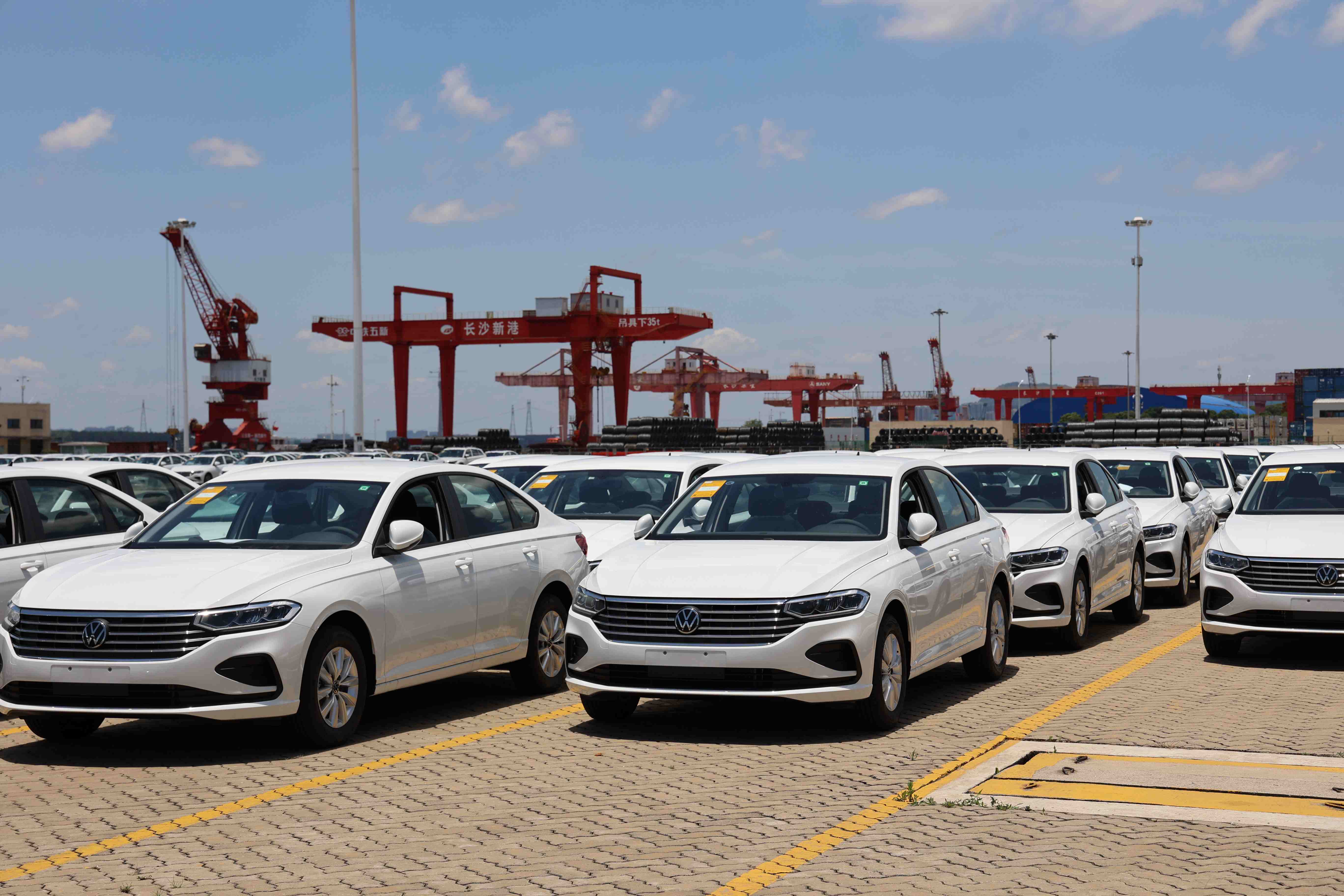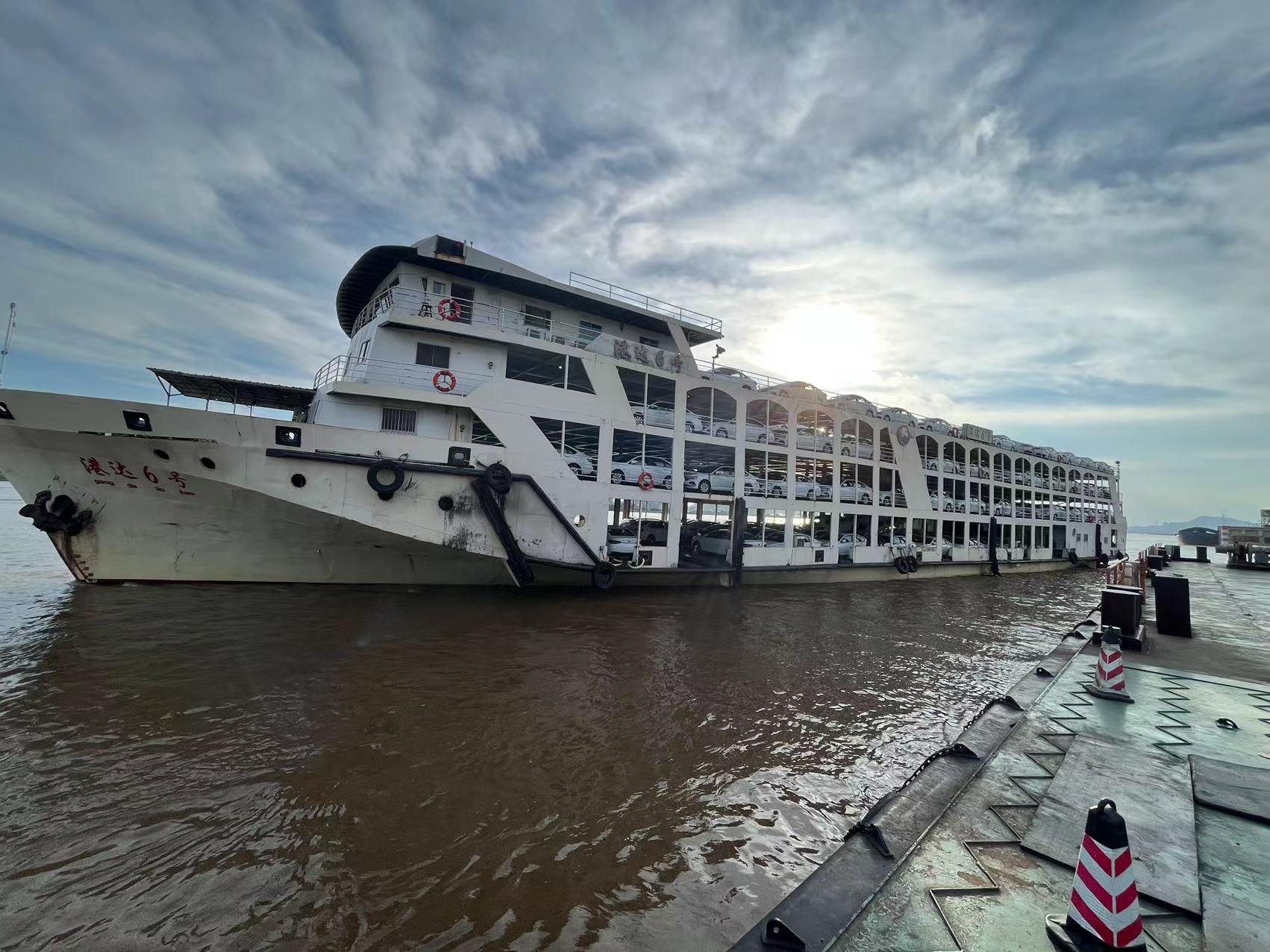 在歷經(jīng)十小時作業(yè)后,該批次車輛全部順利集港裝船。殘霞潛江波光爍,船鳴三聲水天開。18時,“港達6號” 滾裝船滿載357臺上汽大眾汽車,沐浴晚霞余暉,順利駛出長沙新港碼頭。