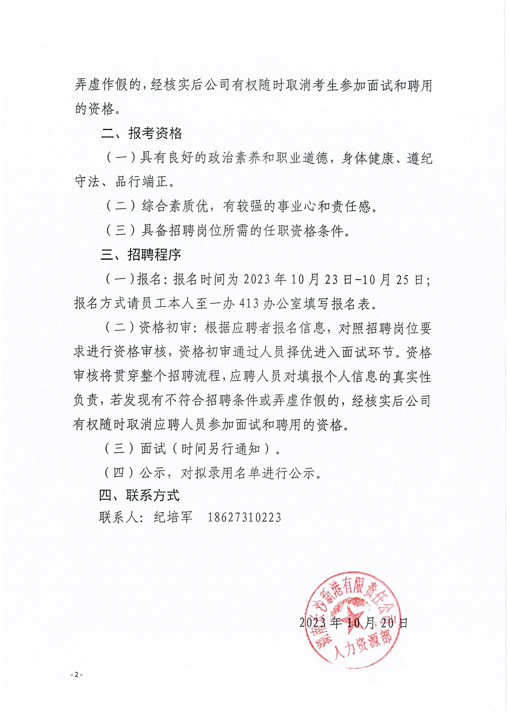 湖南長沙新港有限責任公司招聘公告
